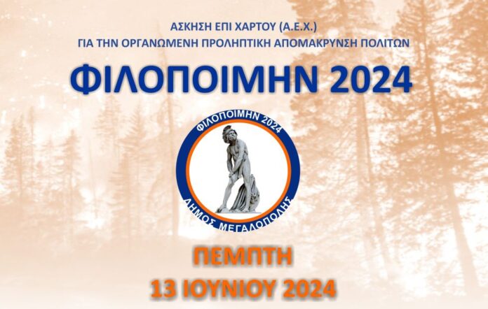 Την Πέμπτη 13 Ιουνίου στη Μεγαλόπολη στην Αίθουσα Δημοτικού Συμβουλίου, θα διεξαχθεί Άσκηση Επί Χάρτου (Α.Ε.Χ.) με την ονομασία «Φιλοποίμην 2024».
