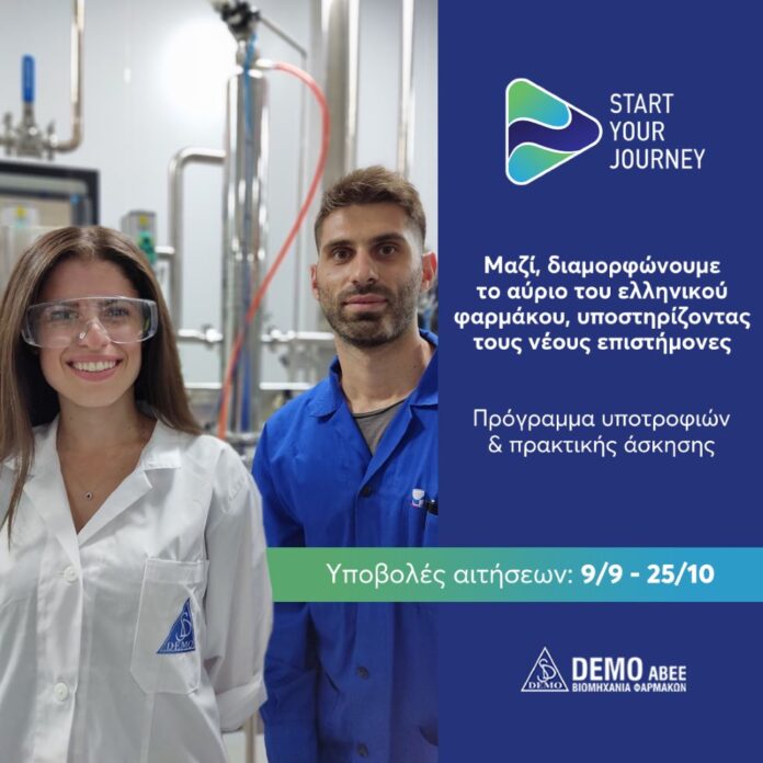 Η DEMO, ηγέτιδα εταιρεία στον κλάδο της φαρμακοβιομηχανίας, ανακοινώνει την έναρξη της περιόδου υποβολής αιτήσεων για τον 7ο κύκλο του Start Your Journey, του Προγράμματος Υποτροφιών και Πρακτικής Άσκησης της εταιρείας, η οποία θα διαρκέσει από τις 9 Σεπτεμβρίου μέχρι 25 Οκτωβρίου 2024.