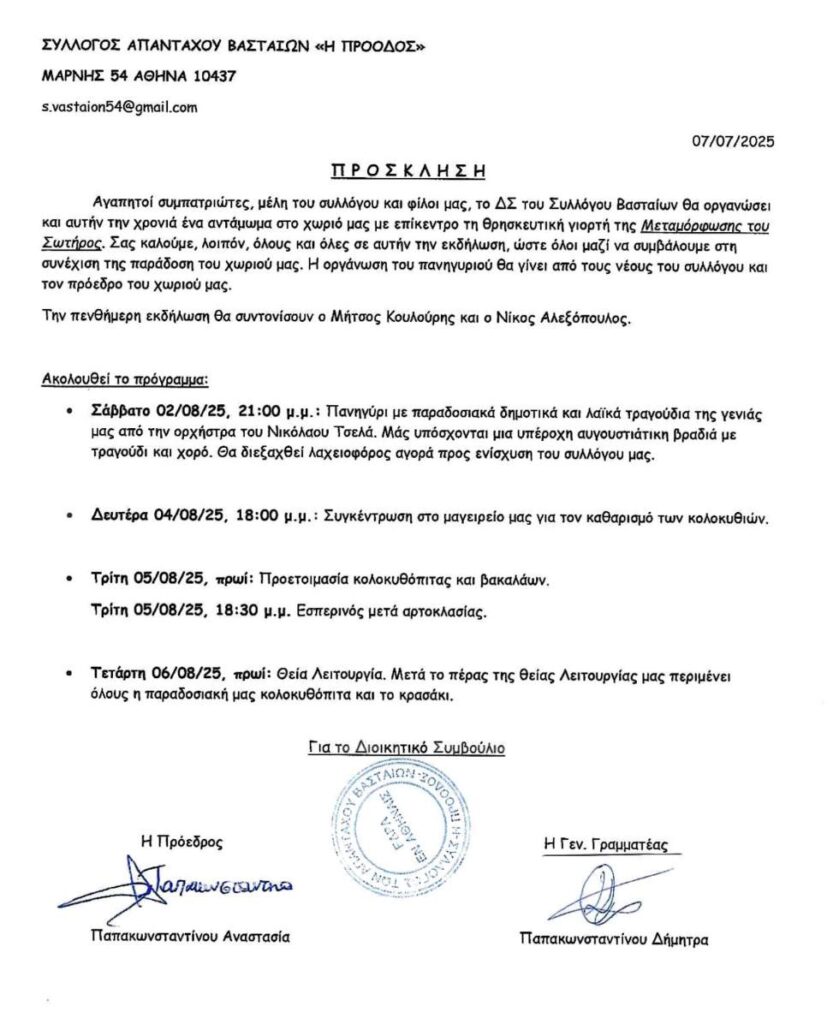 ΑρχικήΑΡΘΡΑΑντάμωμα στο Βάστα με επίκεντρο την εορτή της Μεταμόρφωσης του Σωτήρος Αντάμωμα στο Βάστα με επίκεντρο την εορτή της Μεταμόρφωσης του Σωτήρος By kafeneio-megalopolis 11 Ιουλίου 2025 0 270 FacebookTwitterWhatsAppViberEmailΤυπώνω Ακολουθήστε τo Kafeneio-Megalopolis.gr στο Google News, για να μαθαίνετε πρώτοι όλα τα νέα από τη Μεγαλόπολη και την ευρύτερη περιοχή. Πρόγραμμα εκδηλώσεων στο Βάστα τον Αύγουστο Σχόλια με λογαριασμό Facebook TagsΑΡΘΡΑΣΥΛΛΟΓΟΙ FacebookTwitterWhatsAppViberEmailΤυπώνω Ακολουθήστε τo Kafeneio-Megalopolis.gr στο Google News, για να μαθαίνετε πρώτοι όλα τα νέα από τη Μεγαλόπολη και την ευρύτερη περιοχή. Προηγούμενο άρθροΕορτασμός του Προφήτη Ηλία στο ΚαράτουλαΕπόμενο άρθροΕνημερωτική Εκδήλωση για την Λειτουργία του Μηχανισμού Στήριξης Επιχειρήσεων της Δομής Μεγαλόπολης kafeneio-megalopolis RELATED ARTICLES ΑΘΛΗΤΙΣΜΟΣ Διάκριση για αθλήτρια από τη Μεγαλόπολη kafeneio-megalopolis - 14 Οκτωβρίου 2025 ΑΡΘΡΑ Υπεγράφη η σύμβαση για το έργο «Κατασκευή ιερού Ναού και περιβάλλοντος χώρου Μετοχίου Σινά στην Τ.Κ.Κοτυλίου» kafeneio-megalopolis - 14 Οκτωβρίου 2025 ΑΠΕΡΓΙΑ Απεργιακή συγκέντρωση στην Τρίπολη ενάντια στο νέο Εργασιακό Νομοσχέδιο (pics,vid) kafeneio-megalopolis - 14 Οκτωβρίου 2025 ΑΦΗΣΤΕ ΜΙΑ ΑΠΑΝΤΗΣΗ Ακύρωση απάντησηςΣυνδεθείτε για να αφήσετε ένα σχόλιο ΑναζήτησηΑναζήτηση Άρθρων 11,757ΥποστηρικτέςΚάντε Like1,647ΑκόλουθοιΑκολουθήστε6,038ΣυνδρομητέςΓίνετε συνδρομητής FACEBOOK ΑΘΛΗΤΙΣΜΟΣ Διάκριση για αθλήτρια από τη Μεγαλόπολη Από την σελίδα του Fok - Φιλογυμναστικού Όμιλου Καλαμάτας διαβάζουμε: Ολόχρυση επέστρεψε η αγωνιστική μας... 14 Οκτωβρίου 2025 ΑΡΘΡΑ Υπεγράφη η σύμβαση για το έργο «Κατασκευή ιερού Ναού και περιβάλλοντος χώρου Μετοχίου Σινά στην Τ.Κ.Κοτυλίου» Στα πλαίσια υλοποίησης του 6ου ΕΑΠ του Δήμου Μεγαλόπολης, ολοκληρώθηκαν οι διαδικασίες σύμφωνα με... 14 Οκτωβρίου 2025 ΑΠΕΡΓΙΑ Απεργιακή συγκέντρωση στην Τρίπολη ενάντια στο νέο Εργασιακό Νομοσχέδιο (pics,vid) Το πρωί της Τρίτης, το Παναρκαδικό Συνδικάτο Τεχνεργατών Οικοδόμων, η Αγωνιστική Συσπείρωση Εκπαιδευτικών, το... 14 Οκτωβρίου 2025 ΑΠΕΡΓΙΑ Το Καφενείο Μεγαλόπολης συμμετέχει στην 4ωρη στάση εργασίας των ΜΜΕ Η Ένωση Συντακτών Επαρχιακού Τύπου συμμετέχει στην τετράωρη στάση εργασίας των δημοσιογράφων, από τις... 14 Οκτωβρίου 2025 ΠΡΟΣΦΑΤΑ ΣΧΟΛΙΑ Ασημακόπουλος Ιωάννης επί Παρουσίαση βιβλίου “Τα Αρκαδικά Μονοπάτια και τα Apollo Trails στο Λύκαιο Όρος, το ιερό βουνό των Αρκάδων” το Σάββατο 19 Αυγούστου στη Μεγαλόπολη Ασημακόπουλος Ιωάννης επί Νίκας: Προχωρεί η διαδικασία για το φωτοβολταϊκό των 2.000 στρεμμάτων στη Μεγαλόπολη που θα χρησιμοποιηθεί από τους αγρότες της Μεσσηνίας και της Αργολίδας Γιώργος Αδαμόπουλος επί Ερώτημα προς την αρμόδια Περιφέρεια Πελοποννήσου για την ασφαλή λειτουργία της “νέας” Γέφυρας του Αλφειού στην Καρύταινα Κατριβανος επί Ερώτημα προς την αρμόδια Περιφέρεια Πελοποννήσου για την ασφαλή λειτουργία της “νέας” Γέφυρας του Αλφειού στην Καρύταινα