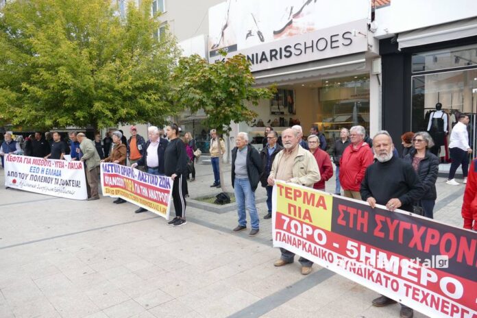 Το πρωί της Τρίτης, το Παναρκαδικό Συνδικάτο Τεχνεργατών Οικοδόμων, η Αγωνιστική Συσπείρωση Εκπαιδευτικών, το Σωματείο Εργαζομένων στις Εμπορικές Επιχειρήσεις του Ν. Αρκαδίας και τα Συνταξιουχικά Σωματεία Αρκαδίας, πραγματοποίησαν απεργιακή συγκέντρωση στην πλατεία Πετρινού στην Τρίπολη.