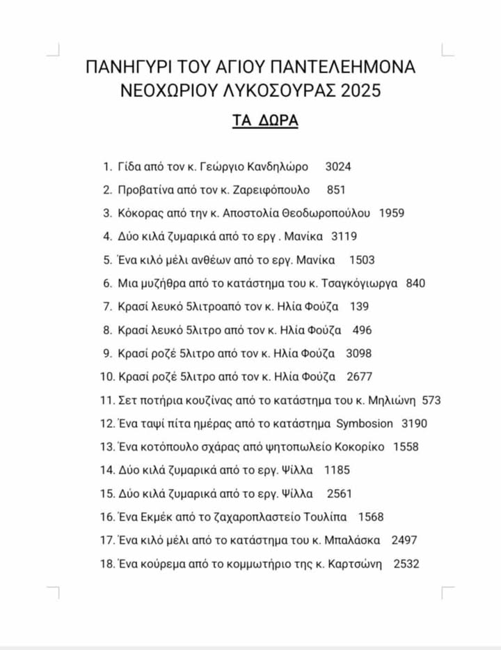 Αποτελέσματα λαχειοφόρου αγοράς από το Νεοχώρι Λυκοσούρας