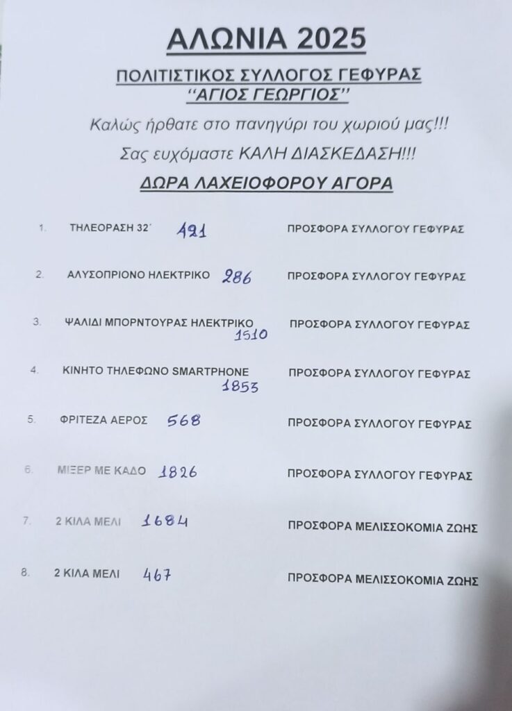 ΑρχικήΑΡΘΡΑΑποτελέσματα λαχειοφόρου αγοράς στην Γέφυρα Αποτελέσματα λαχειοφόρου αγοράς στην Γέφυρα By kafeneio-megalopolis 18 Αυγούστου 2025 0 172 FacebookTwitterWhatsAppViberEmailΤυπώνω Ακολουθήστε τo Kafeneio-Megalopolis.gr στο Google News, για να μαθαίνετε πρώτοι όλα τα νέα από τη Μεγαλόπολη και την ευρύτερη περιοχή. Αποτελέσματα λαχειοφόρου αγοράς στην Γέφυρα: Τηλέφωνο επικοινωνίας 6992701554 Σχόλια με λογαριασμό Facebook TagsΑΡΘΡΑΧΩΡΙΑ FacebookTwitterWhatsAppViberEmailΤυπώνω Ακολουθήστε τo Kafeneio-Megalopolis.gr στο Google News, για να μαθαίνετε πρώτοι όλα τα νέα από τη Μεγαλόπολη και την ευρύτερη περιοχή. Προηγούμενο άρθροΑποτελέσματα λαχειοφόρου αγοράς στον ΆκοβοΕπόμενο άρθροΜουσική βραδιά στο Ίσαρη την Δευτέρα 18 Aυγούστου kafeneio-megalopolis RELATED ARTICLES ΑΡΘΡΑ Βράβευση Επιμελητηρίου Αρκαδίας για την έμπρακτη στήριξή του, στο Megalopolis Theater Run kafeneio-megalopolis - 14 Οκτωβρίου 2025 ΑΘΛΗΤΙΣΜΟΣ Διάκριση για αθλήτρια από τη Μεγαλόπολη kafeneio-megalopolis - 14 Οκτωβρίου 2025 ΑΡΘΡΑ Υπεγράφη η σύμβαση για το έργο «Κατασκευή ιερού Ναού και περιβάλλοντος χώρου Μετοχίου Σινά στην Τ.Κ.Κοτυλίου» kafeneio-megalopolis - 14 Οκτωβρίου 2025 ΑναζήτησηΑναζήτηση Άρθρων 11,753ΥποστηρικτέςΚάντε Like1,647ΑκόλουθοιΑκολουθήστε6,038ΣυνδρομητέςΓίνετε συνδρομητής FACEBOOK ΑΡΘΡΑ Βράβευση Επιμελητηρίου Αρκαδίας για την έμπρακτη στήριξή του, στο Megalopolis Theater Run Ένα ξεχωριστό βραβείο παρέλαβε ο Αν. Πρόεδρος του Τμήματος Εμπορίου του Επιμελητηρίου Αρκαδίας κ.... 14 Οκτωβρίου 2025 ΑΘΛΗΤΙΣΜΟΣ Διάκριση για αθλήτρια από τη Μεγαλόπολη Από την σελίδα του Fok - Φιλογυμναστικού Όμιλου Καλαμάτας διαβάζουμε: Ολόχρυση επέστρεψε η αγωνιστική μας... 14 Οκτωβρίου 2025 ΑΡΘΡΑ Υπεγράφη η σύμβαση για το έργο «Κατασκευή ιερού Ναού και περιβάλλοντος χώρου Μετοχίου Σινά στην Τ.Κ.Κοτυλίου» Στα πλαίσια υλοποίησης του 6ου ΕΑΠ του Δήμου Μεγαλόπολης, ολοκληρώθηκαν οι διαδικασίες σύμφωνα με... 14 Οκτωβρίου 2025 ΑΠΕΡΓΙΑ Απεργιακή συγκέντρωση στην Τρίπολη ενάντια στο νέο Εργασιακό Νομοσχέδιο (pics,vid) Το πρωί της Τρίτης, το Παναρκαδικό Συνδικάτο Τεχνεργατών Οικοδόμων, η Αγωνιστική Συσπείρωση Εκπαιδευτικών, το... 14 Οκτωβρίου 2025 ΠΡΟΣΦΑΤΑ ΣΧΟΛΙΑ Ασημακόπουλος Ιωάννης επί Παρουσίαση βιβλίου “Τα Αρκαδικά Μονοπάτια και τα Apollo Trails στο Λύκαιο Όρος, το ιερό βουνό των Αρκάδων” το Σάββατο 19 Αυγούστου στη Μεγαλόπολη Ασημακόπουλος Ιωάννης επί Νίκας: Προχωρεί η διαδικασία για το φωτοβολταϊκό των 2.000 στρεμμάτων στη Μεγαλόπολη που θα χρησιμοποιηθεί από τους αγρότες της Μεσσηνίας και της Αργολίδας Γιώργος Αδαμόπουλος επί Ερώτημα προς την αρμόδια Περιφέρεια Πελοποννήσου για την ασφαλή λειτουργία της “νέας” Γέφυρας του Αλφειού στην Καρύταινα Κατριβανος επί Ερώτημα προς την αρμόδια Περιφέρεια Πελοποννήσου για την ασφαλή λειτουργία της “νέας” Γέφυρας του Αλφειού στην Καρύταινα