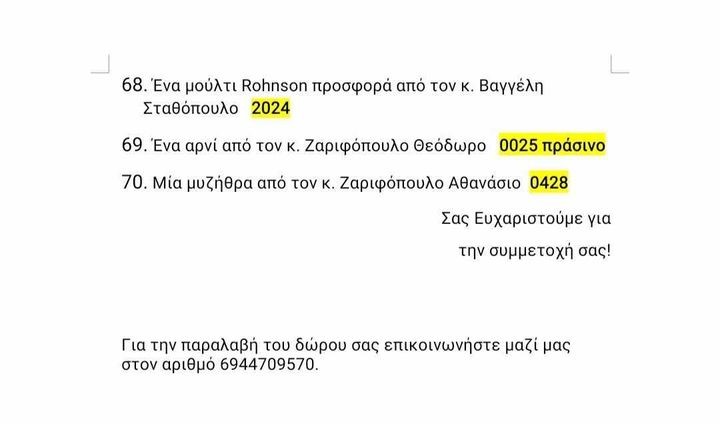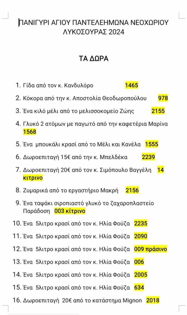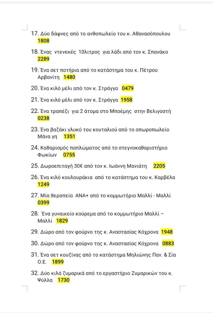 Δείτε στα αρχεία που ακολουθούν τους λαχνούς που κερδίζουν στην λαχειοφόρο αγορά στην εκδήλωση στο Νεοχώρι Λυκόσουρας