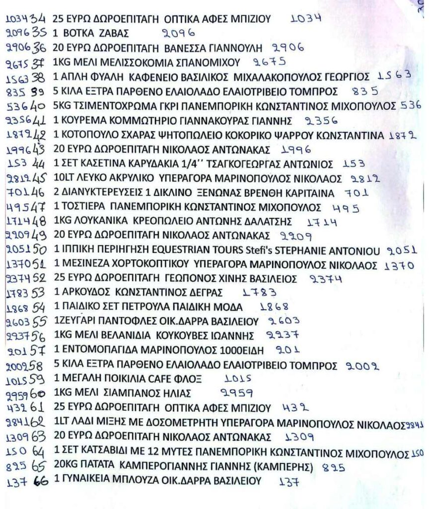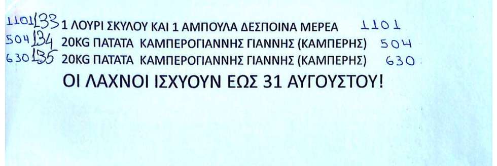 Δείτε στις φωτογραφίες που ακολουθούν τα αποτελέσματα της λαχειοφόρου αγοράς. Τηλέφωνο επικοινωνίας 6940089912. Καμπερογιάννης Ιωάννης.