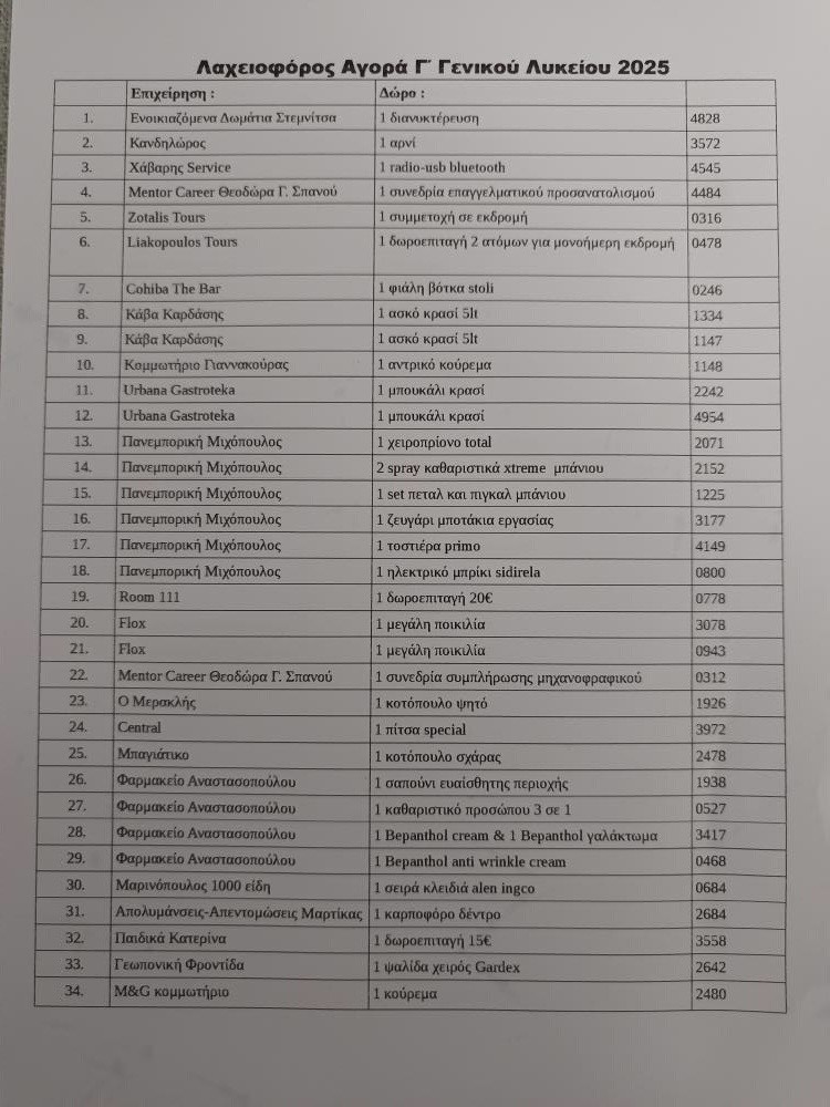 Ευχαριστούμε τα καταστήματα της πόλης που μας στήριξαν στην προσπάθειά μας να έχουμε όσο το δυνατόν περισσότερα δώρα στην λαχειοφόρο!!!