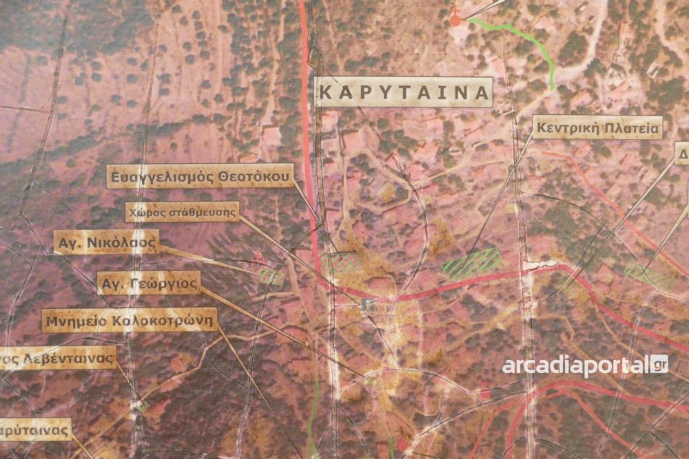 Στο χωριό μάς ξενάγησε η πρόεδρος του Πολιτιστικού Συλλόγου «Κοινόν Καρυτινών» κυρία Ελένη Κουσκουρελου, και μας έδειξε την Καρύταινα μέσα από τα δικά της μάτια.