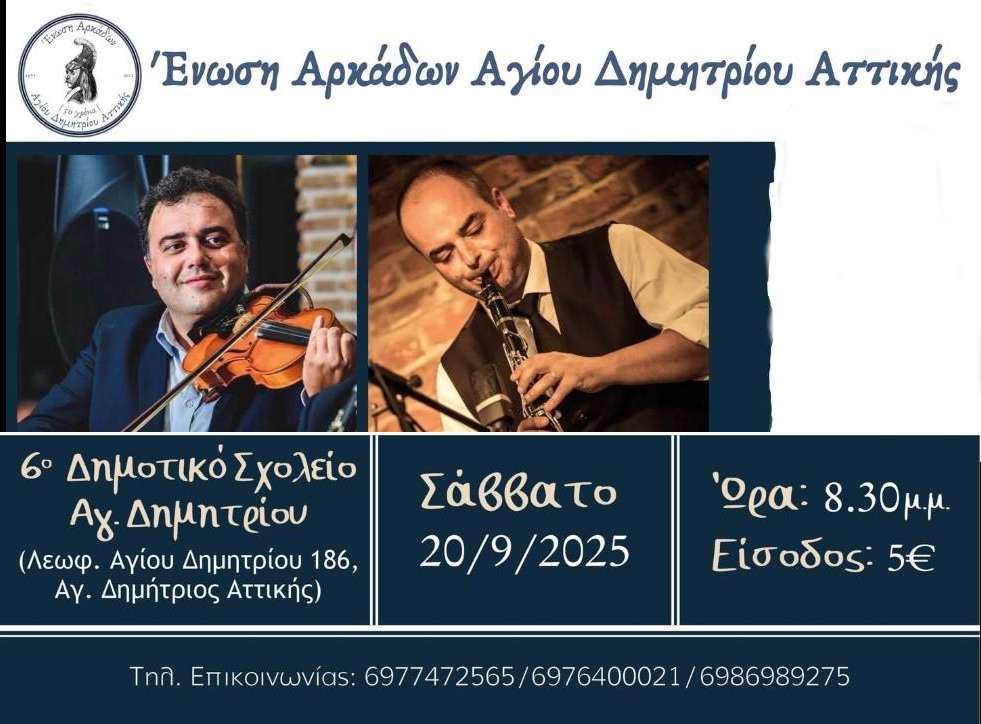 Η Ένωση Αρκάδων Αγίου Δημητρίου διοργανώνει το ΑΡΚΑΔΙΚΟ ΓΛΕΝΤΙ , το Σάββατο 20 Σεπτεμβρίου στο 6ο Δημοτικό Σχολείο Αγίου Δημητρίου.