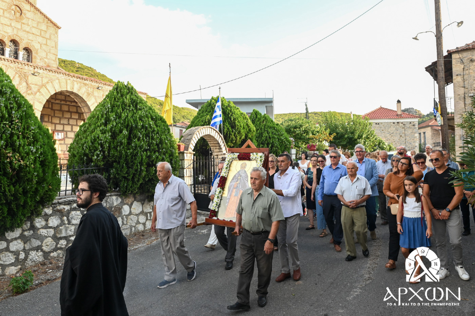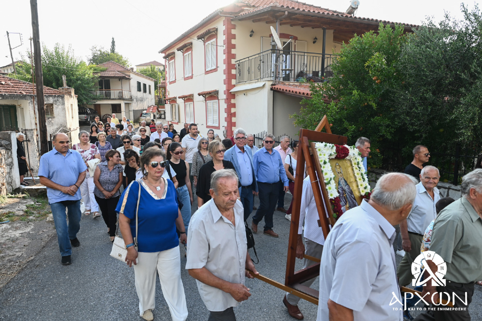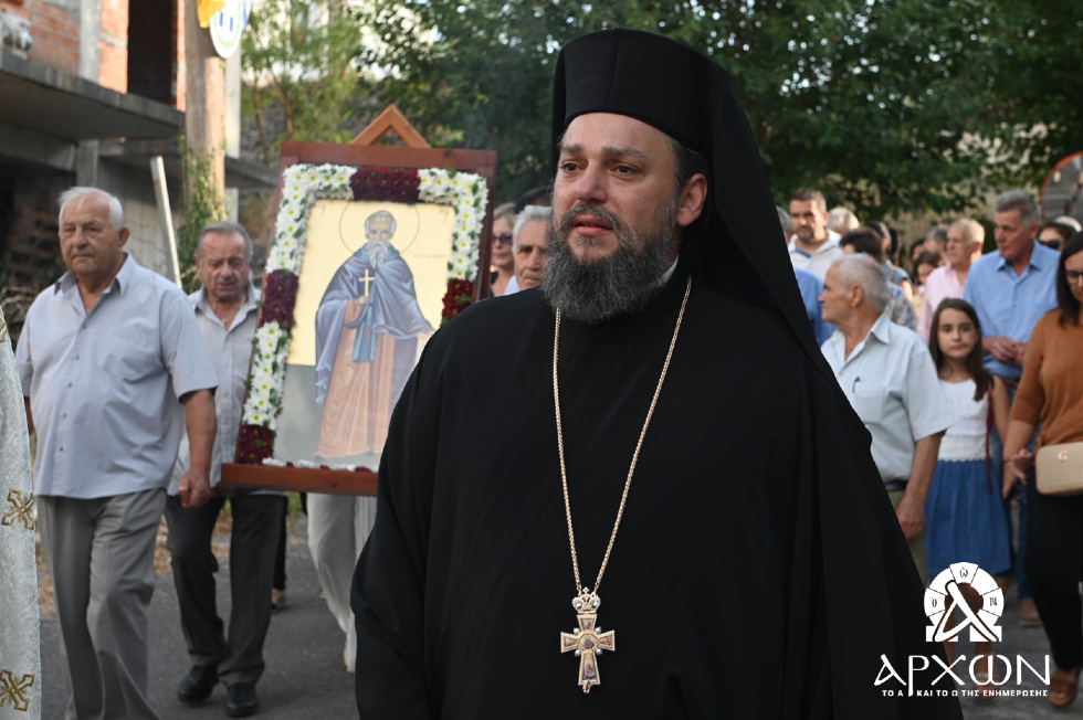 Προ του Πανηγυρικού Εσπερινού Ιερείς και πιστοί λιτανευτικώς και υπό τους ήχους της Φιλαρμονικής του Δήμου Μεγαλόπολης, μετέφεραν το χαριτόβρυτο Ιερό Λείψανό του Οσίου και την Ιερά του Εικόνα από τον ενοριακό Ιερό Ναό Αποστόλων Πέτρου και Παύλου στον πανηγυρίζοντα Ιερό Ναό.