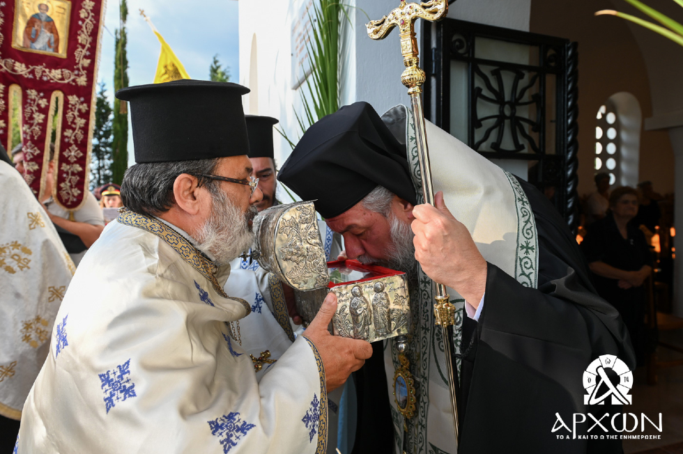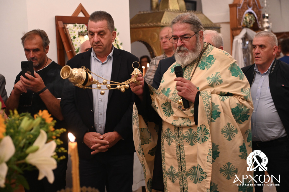 Ακολούθως, τελέσθηκε Πανηγυρικός Αρχιερατικός Εσπερινός, χοροστατούντος του Μητροπολίτη κ. Νικηφόρου, πλαισιουμένου από τους Καθηγούμενο της Ι. Μονής Κολοκοτρώνη και εφημέριο του Ναού Πανοσιολ. Αρχιμ. Ελπιδοφόρο Μπεναρδή, Πανοσιολ. Αρχιμ. Γρηγόριο Μπάκα, Πανοσιολ. Αρχιμ. Νικηφόρο Λύκο, Πρωτοπρ. Βασίλειο Δάρρα, Πρωτοπρ. Παναγιώτη Σπανό, Πρωτοπρ. Γεώργιο Κοκοσιούλη, Πρεσβ. Θεόφιλο Δράπαλο, Πρεσβ. Χρήστο Καγιανά και τον Διάκονο π. Δημήτριο Πολυχρονόπουλο.