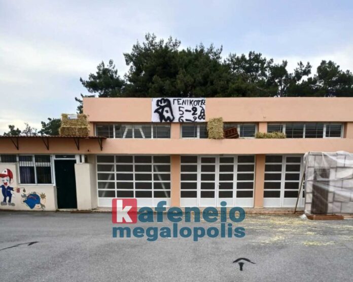 Έχει γίνει απόπειρα παραβίασης σχολικών αιθουσών , καταστροφή και λέρωμα λουκέτων – κλειδαριών, βαψίματα με μπογιές και έχει αναρτηθεί ένα πανό το οποίο αναφέρει ψευδώς ότι γίνεται κατάληψη.