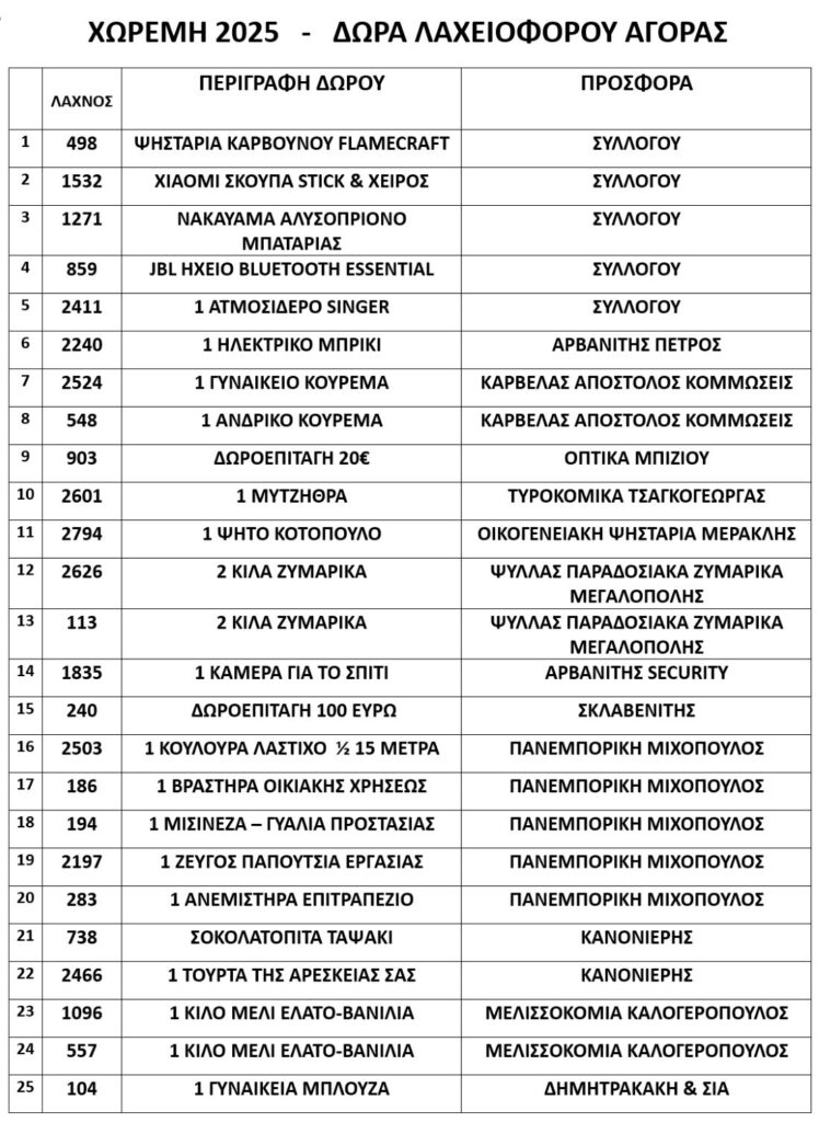 Δείτε φωτογραφίες και τους λαχνούς που κερδίζουν τα δώρα της κλήρωσης, για την παραλαβή των δώρων επικοινωνήστε με τα τηλέφωνα 6970681773 – 6937188819.