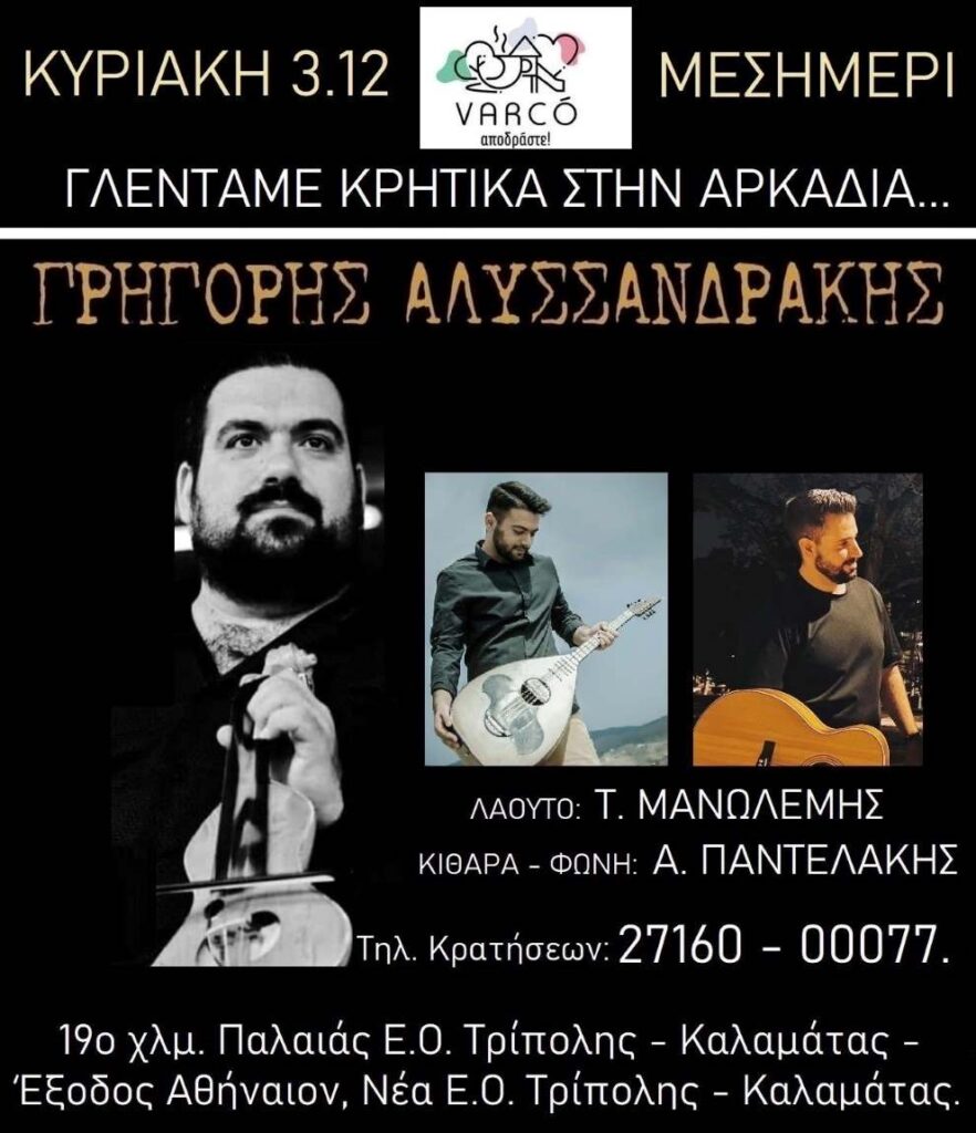 Την Κυριακή 3 Δεκεμβρίου από τις 2 το μεσημέρι στο VARCO στo Αθήναιον Αρκαδίας ένα μοναδικό Κρητικό γλέντι!