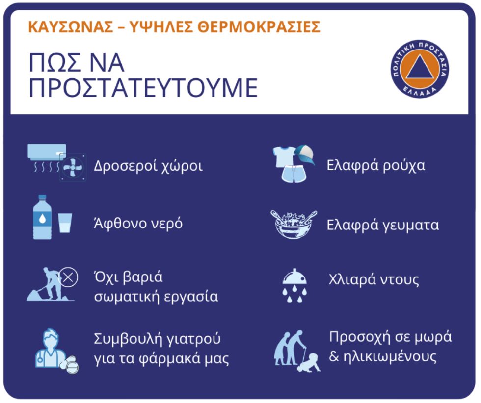 ΟΔΗΓΙΕΣ ΠΡΟΣΤΑΣΙΑΣ ΑΠΟ ΤΟΝ ΚΑΥΣΩΝΑ σύμφωνα με το Υπουργείο Κλιματικής Κρίσης και Πολιτικής Προστασίας
