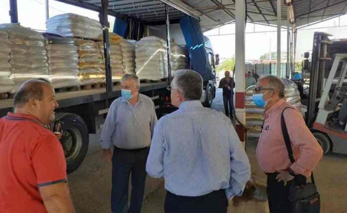 Ο Δήμαρχος Μεγαλόπολης κ. Αθανάσιος Χριστογιαννόπουλος, με τον  Αντιπεριφερειάρχη κ. Χρήστο Λαμπρόπουλο και τον θεματικό Αντιπεριφερειάρχη αγροτικών θεμάτων κ. Νίκων Τζινιέρη,  επισκέφτηκαν το γραφείο κίνησης του Δήμου, όπου γίνεται η διανομή των ζωοτροφών.