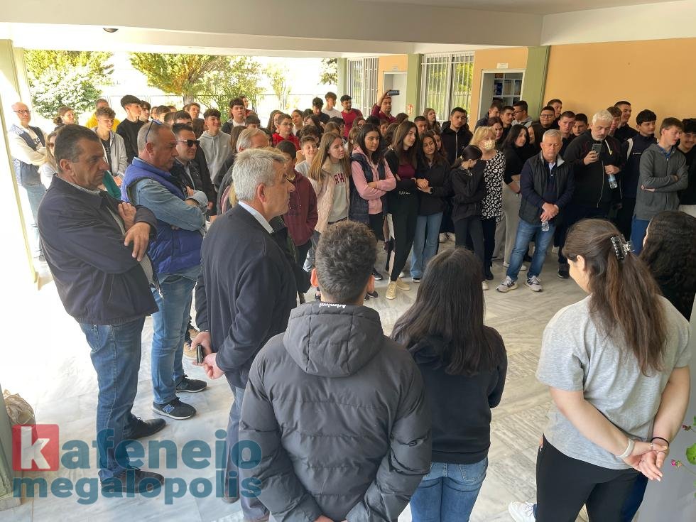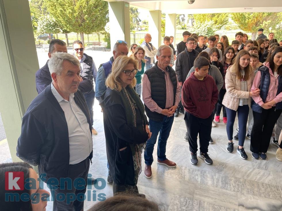 Σύντομο χαιρετισμό απεύθυνε ο Δήμαρχος Μεγαλόπολης, κύριος Μιχόπουλος, ο Πρόεδρος του Δημοτικού Συμβουλίου, κύριος Χίνης και ο Διευθυντής Δευτεροβάθμιας Εκπαίδευσης Αρκαδίας, κύριος Γαλήνος.