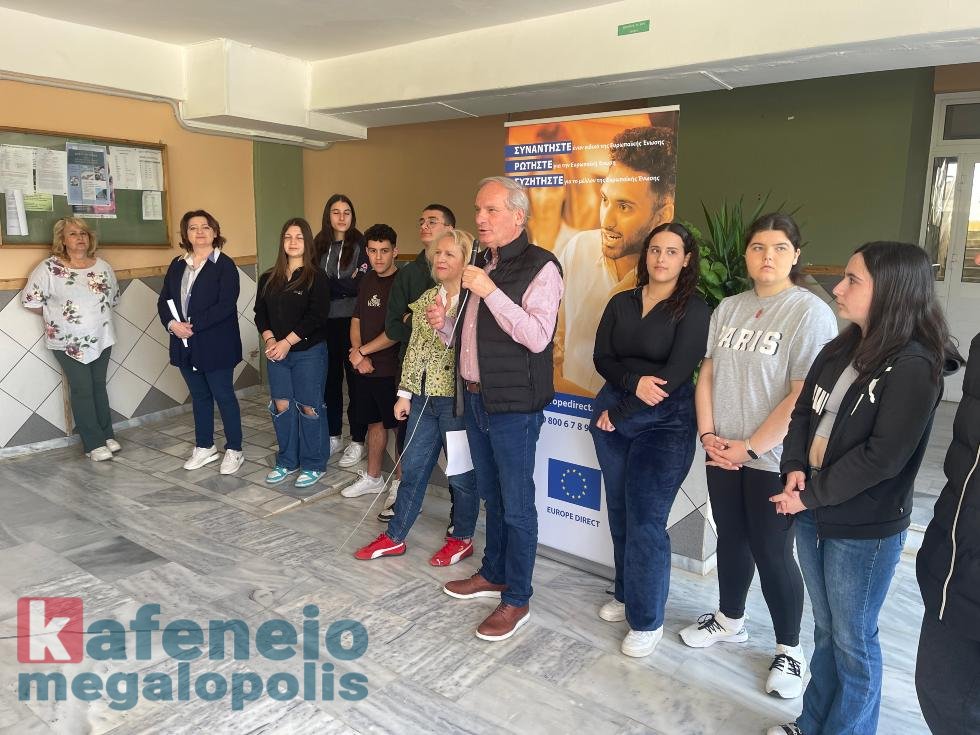 Σήμερα το πρωί η ομάδα μαθητών και μαθητριών του ΕΠΑΛ Μεγαλόπολης, που συμμετέχουν στο πρόγραμμα «Σχολεία Πρέσβεις του Ευρωπαϊκού Κοινοβουλίου», σε συνεργασία με τον Δήμο Μεγαλόπολης, το EUROPE DIRECT Πελοποννήσου και με την υποστήριξη της Διεύθυνσης Δευτεροβάθμιας Εκπαίδευσης Αρκαδίας πραγματοποίησαν περιβαλλοντική βιωματική δράση για να γιορτάσουν την Ημέρα της Ευρώπης, δημιουργώντας το «Άλσος των Μαθητών» στην πόλη της Μεγαλόπολης με σύνθημα «Χρόνια Πολλά Ευρώπη από την Μεγαλόπολη».