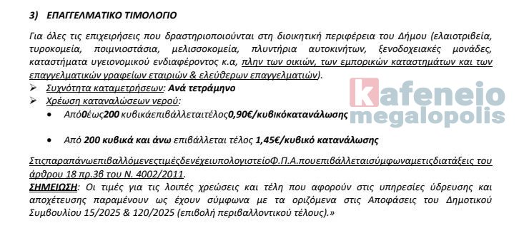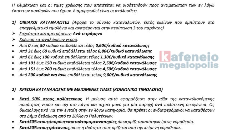 2.Αναπροσαρμογή τελών ύδρευσης του Δήμου Μεγαλόπολης έτους 2025 λόγω έκτακτων συνθηκών λειψυδρίας.