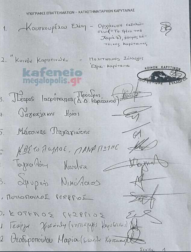 ΥΠΟΓΡΑΦΕΣ ΕΠΑΓΓΕΛΜΑΤΙΩΝ – ΚΑΤΑΣΤΗΜΑΤΑΡΧΩΝ ΚΑΡΥΤΑΙΝΑΣ
