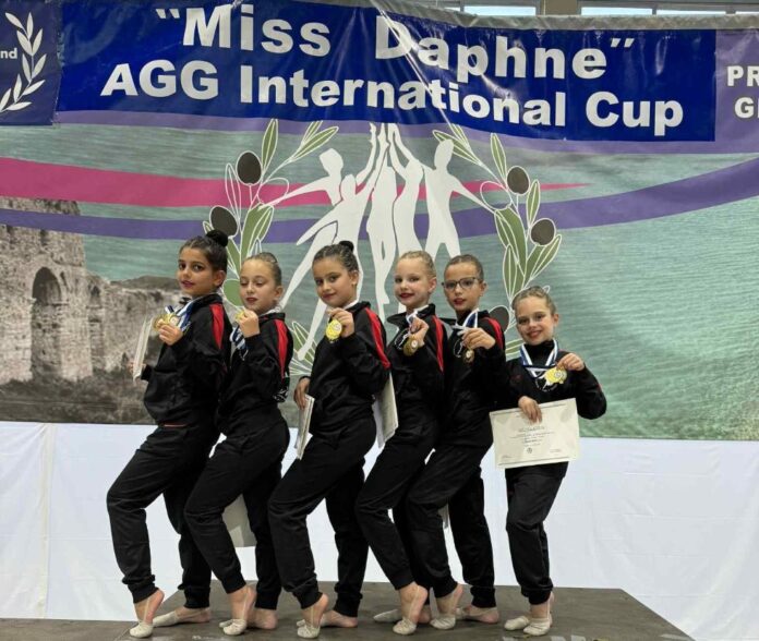 Ολόχρυση επέστρεψε η αγωνιστική μας ομάδα αισθητικής ομαδικής γυμναστικής από το Πανελλήνιο Κύπελλο και τον διεθνή αγώνα Daphne Cup! Κυπελλούχος Ελλάδος στέφθηκε η ομάδα μας για το 2025 στην κατηγορία 8-10 short programme ,τη πρώτη θέση έλαβε επίσης και στον διεθνή αγώνα Daphne Cup στην ίδια κατηγορία !