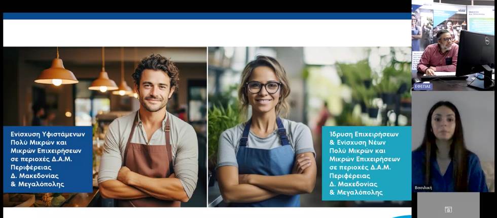 Διαδικτυακή εκδήλωση ενημέρωσης για τις Δράσεις προώθησης της επιχειρηματικότητας του Προγράμματος «Δίκαιη Αναπτυξιακή Μετάβαση 2021-2027» πραγματοποίησε επιτυχώς την Πέμπτη 11 Απριλίου ο ΕΦΕΠΑΕ, σε συνέχεια του κύκλου ενημερωτικών εκδηλώσεων που ολοκληρώθηκε κατά το προηγούμενο διάστημα από τη Διαχειριστική Αρχή ΕΣΠΑ ΔΑΜ σε πόλεις των Περιφερειών Δυτικής Μακεδονίας, Πελοποννήσου, καθώς και σε Θεσσαλονίκη και Αθήνα.