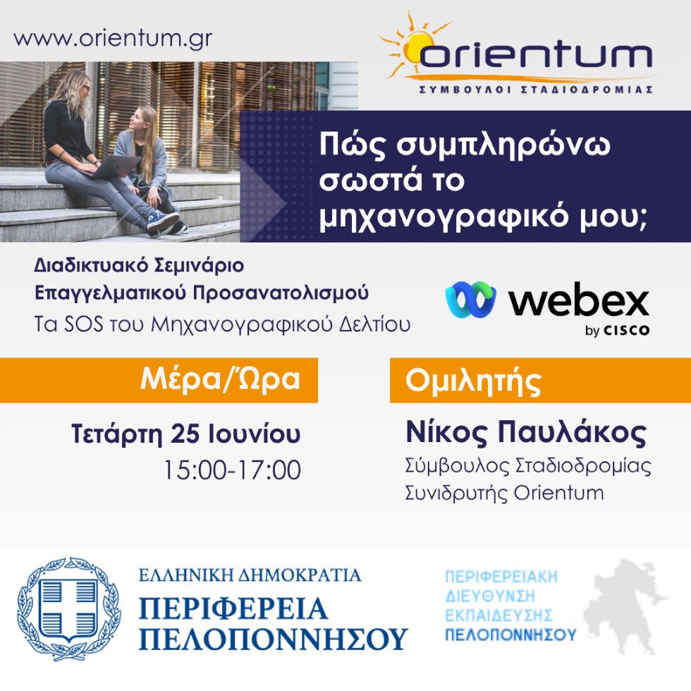 Το σεμινάριο θα πραγματοποιηθεί διαδικτυακά μέσω WEBEX την Τετάρτη 25 Ιουνίου 2025 και ώρα 15:00-17:00