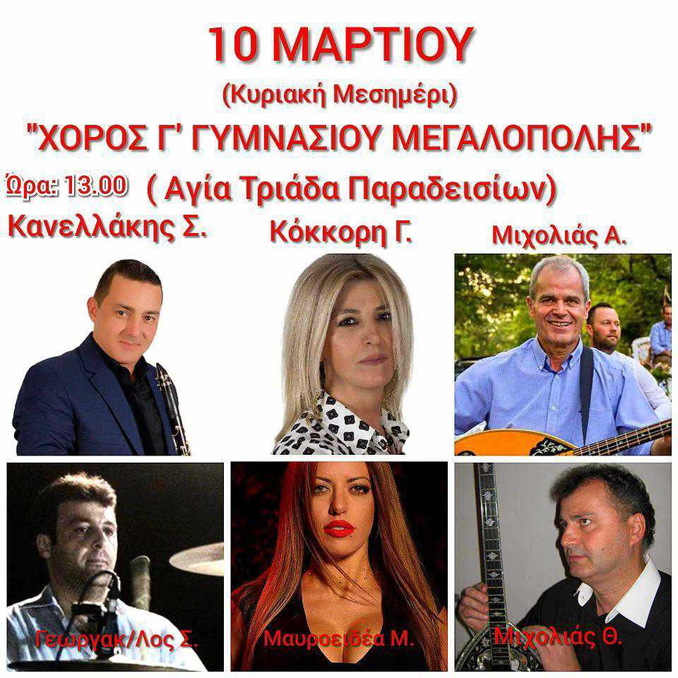 Η Γ’ τάξη Γυμνασίου Μεγαλόπολης, διοργανώνει τον ετήσιο χορό της, την Κυριακή 10 Μαρτίου στις 13:00 στην Αγία Τριάδα Παραδεισίων.