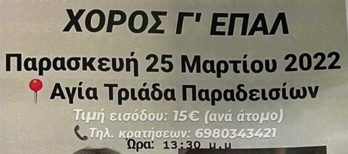 Εκδήλωση από την Γ΄τάξη του ΕΠΑΛ Μεγαλόπολης την Παρασκευή 25 Μαρτίου