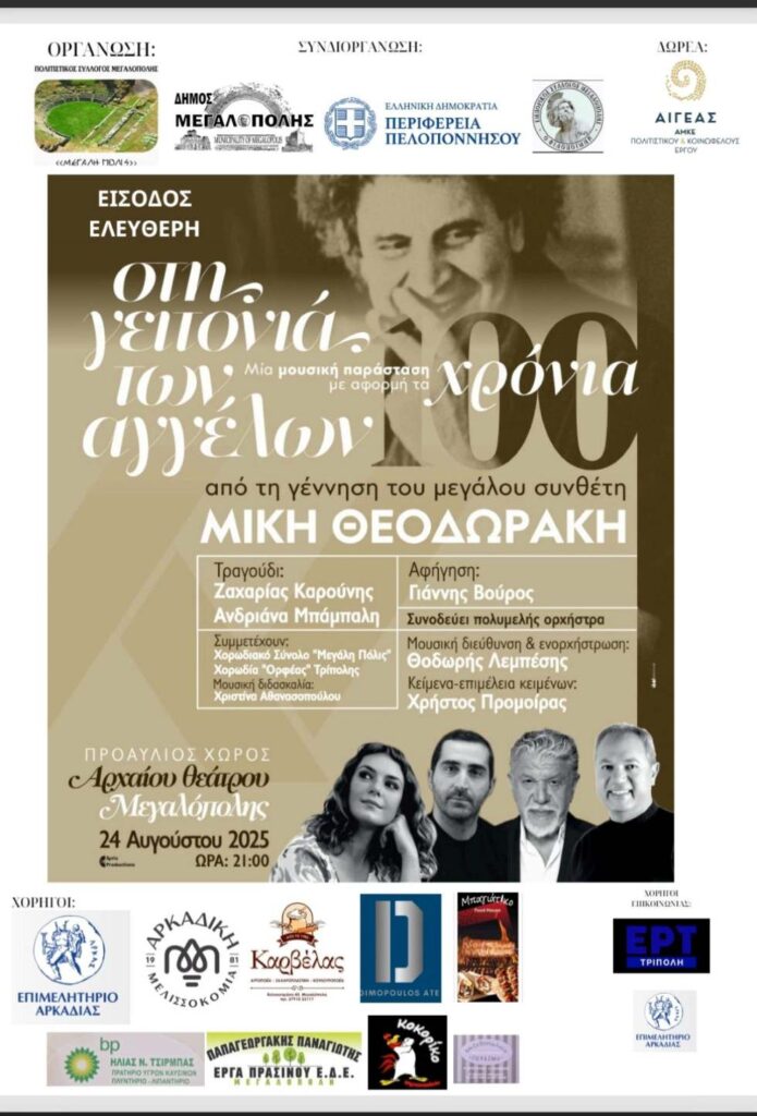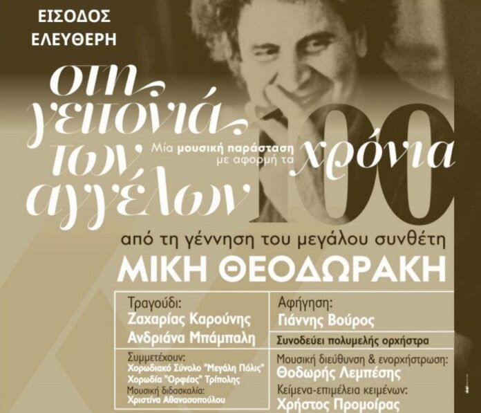 Μια μεγάλη μουσική παράσταση αφιέρωμα στον ΜΙΚΗ ΘΕΟΔΩΡΑΚΗ !!! Ένα παζλ μουσικής και λόγου όπου θα παρουσιαστούν αποσπάσματα από τα μεγάλα εμβληματικά έργα του, με πολλούς ενδιάμεσους μουσικούς σταθμούς!!!