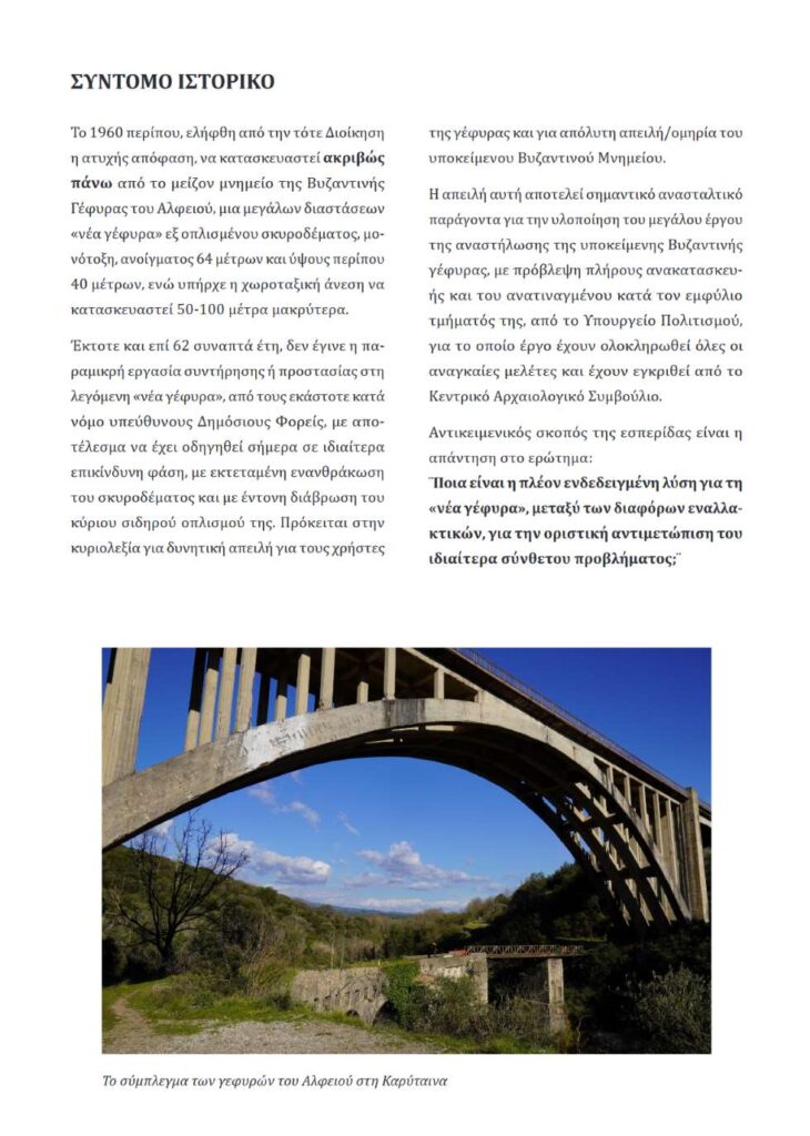 Σύλλογος Καρυτινών: Εκδήλωση για σύμπλεγμα των γεφυρών του Αλφειού την Τετάρτη 28 Φεβρουαρίου στην Αθήνα