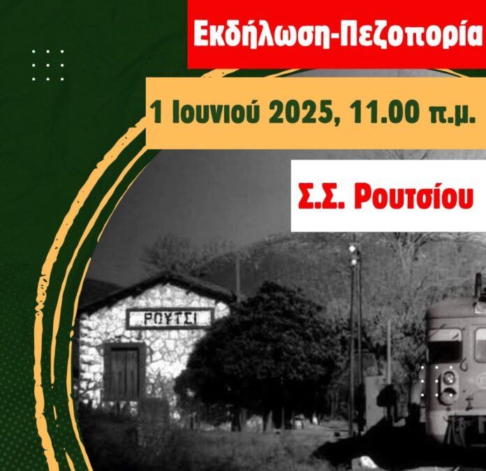 Ως συνέχεια της φετινής δράσης συμβολικού καθαρισμού μερικών χιλιομέτρων της πυκνά δασοποιούμενης και καταστρεφόμενης σιδηροδρομικής γραμμής στην περιοχή Ανεμοδουρίου –Ρουτσίου της Μεγαλόπολης που έγινε από εθελοντές (και με διεθνή συμμετοχή), θα πραγματοποιηθεί την Κυριακή 1 Ιουνίου 2025 στις 11 το πρωί στο Ρούτσι εκδήλωση με τίτλο: