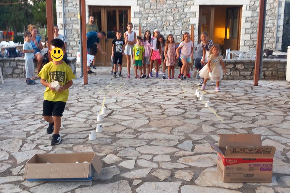 Το απόγευμα της επόμενης μέρας 14 Αυγούστου ήταν αφιερωμένο στους μικρούς μας φίλους, οι οποίοι συμμετείχαν με ενθουσιασμό σε αθλοπαιδιές, τις οποίες είχαν επιμεληθεί τα μέλη του ΔΣ υπό την καθοδήγηση της Ιωάννας Δούμα. Στο τέλος δεν υπήρχαν νικητές και ηττημένοι – μόνο χαμόγελα και περηφάνια για τη συμμετοχή, μ’ ένα δροσερό παγωτό ως ανταμοιβή. Το βράδυ της ίδιας μέρας έλαβε χώρα η προβολή της ταινίας-ντοκιμαντέρ «Mystagogea» του πρόσφατα εκλιπόντος συμπατριώτη μας Γιάννη Δικαιάκου (Martin McDarren). Όσοι παρευρέθηκαν στην προβολή, είχαν την ευκαιρία να μάθουν ή να θυμηθούν τους μύθους της αρκαδικής μυθολογίας μέσα από μια καλλιτεχνική και στοχαστική ματιά.