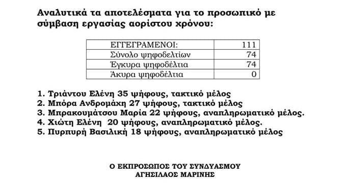 Με τη στήριξη σας ο συνδυασμός μας εκλέγει και τους δύο αντιπροσώπους, τόσο για το μόνιμο προσωπικό, όσο και για το προσωπικό με σύμβαση εργασίας αορίστου χρόνου.