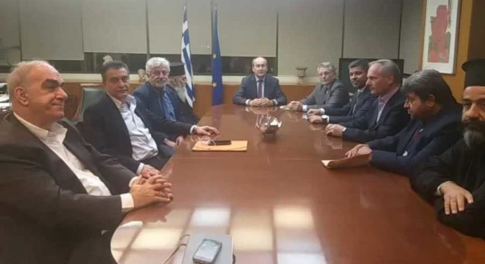 Το απόγευμα της Παρασκευής 15 Νοεμβρίου 2019, ο Δήμαρχος Μεγαλόπολης κ. Αθανάσιος Χριστογιαννόπουλος, ο Πρόεδρος του Δημοτικού Συμβουλίου κ. Θεμιστοκλής Σακελλαριάδης, οι επικεφαλής της μείζονος και ελάσσονος αντιπολίτευσης του Δημοτικού Συμβουλίου κ.κ. Κωνσταντίνος Μιχόπουλος και Σπυρίδων Τσιριγώτης, με τη συμμετοχή του Σεβασμιότατου Μητροπολίτη Γόρτυνος & Μεγαλοπόλεως κ.κ. Ιερεμία, του Πρωτοσύγκελου της Ι.Μ. Γόρτυνος & Μεγαλοπόλεως Αρχιμανδρίτη Ιάκωβου Κανάκη και του Προέδρου του Εργατικού Κέντρου Αρκαδίας κ. Αριστείδη Μπρουμά, είχαν κοινή συνάντηση με τους κ.κ. Κωστή Χατζηδάκη, Υπουργό Περιβάλλοντος & Ενέργειας, Γεράσιμο Θωμά, Υφυπουργό Περιβάλλοντος & Ενέργειας και Γεώργιο Στάσση, Πρόεδρο και Διευθύνοντα Σύμβουλο της Δ.Ε.Η. Α.Ε., στο Γραφείο του κ. Υπουργού, προκειμένου να συζητήσουν για το μείζον θέμα που έχει προκύψει με το ενδεχόμενο της παύσης λειτουργίας των λιγνιτικών μονάδων της Δ.Ε.Η. Α.Ε. στη Μεγαλόπολη.
