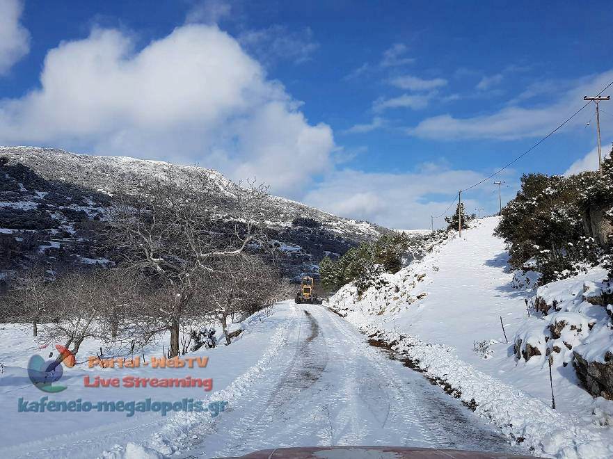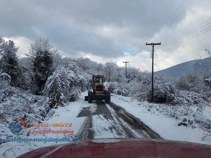 Συγκεκριμένα από το βράδυ συνεργεία του Δήμου Μεγαλόπολης ξεκίνησαν να ρίχνουν αλάτι στους παγωμένους δρόμους του βασικού επαρχιακού δικτύου. Στην συνέχεια με το πρώτο φως της ημέρας ξεκίνησε ο αποχιονισμός των δρόμων αλλά και οι ρίψεις αλατιού στους κεντρικούς δρόμους της Μεγαλόπολης.