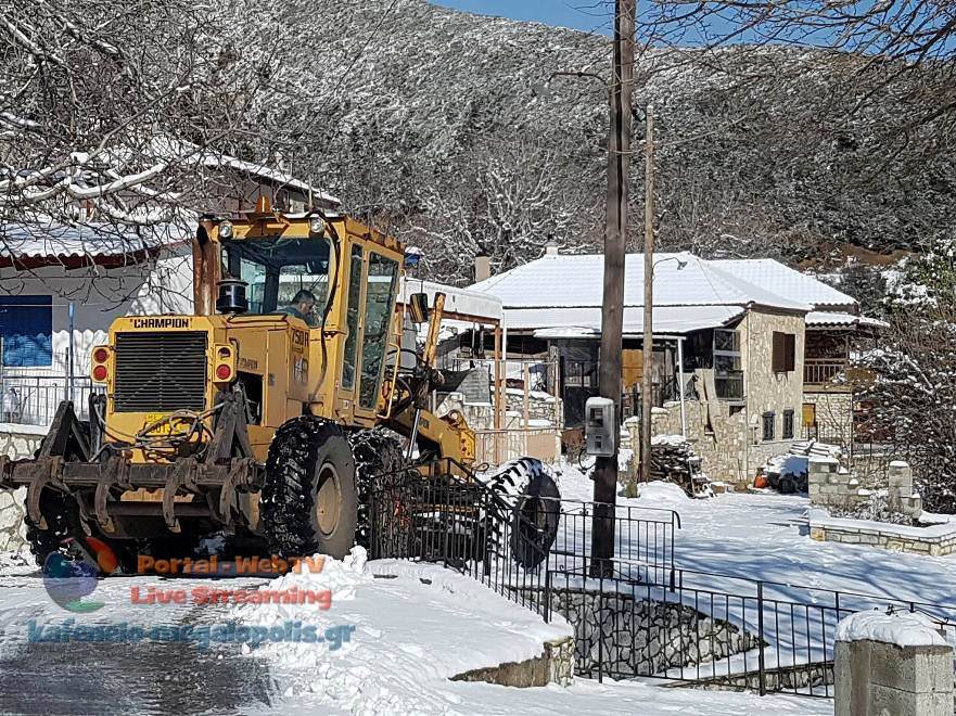 Μαζί με τα συνεργεία του Δήμου την επιχείρηση ανοίγματος των δρόμων βοήθησε και ένα μηχάνημα από το Ορυχείο της ΔΕΗ το οποίο ανέλαβε να καθαρίσει τους δρόμους των χωριών στα νότια και δυτικά της Μεγαλόπολης.