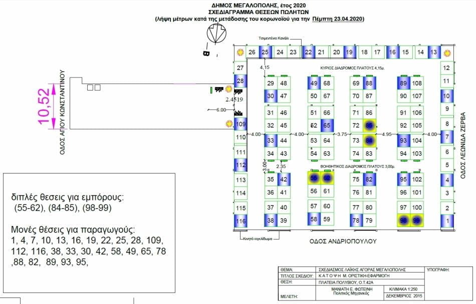 Παρακάτω ακολουθεί το σχεδιάγραμμα της Λαϊκής Αγοράς καθώς και οι κατάλογοι των εμποροπαραγωγών που θα προσέλθουν στις 23 Απριλίου 2020