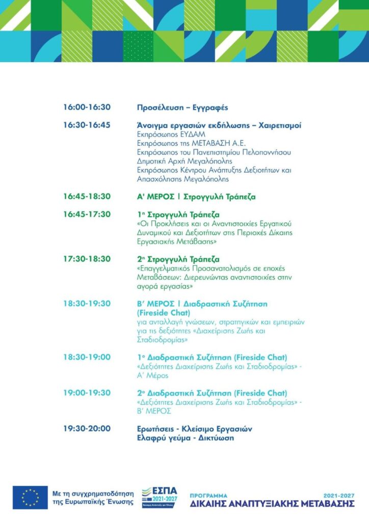 Παρακαλούμε να μας επιβεβαιώσετε τη συμμετοχή σας έως τις 28.1.25, αποστέλλοντας email στη διεύθυνση megalopoli@ejust4skills.gr ή επικοινωνώντας μαζί μας τηλεφωνικά στο 2791027493 ή /και +6946275618 (Κολοκυθά Κατερίνα).