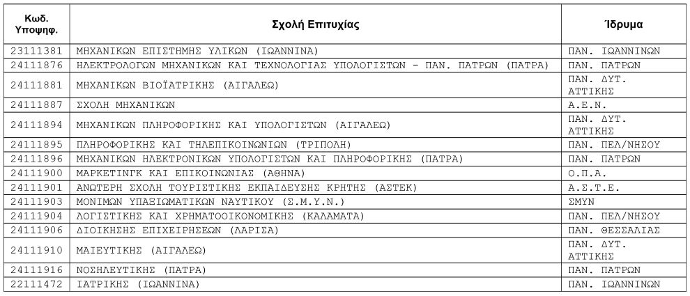 Επιτυχόντες Πανελλαδικών Εξετάσεων 2024 ΕΠΑΛ Μεγαλόπολης