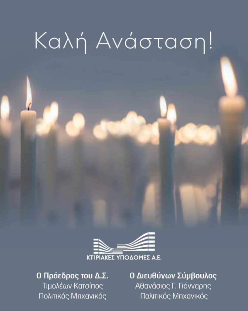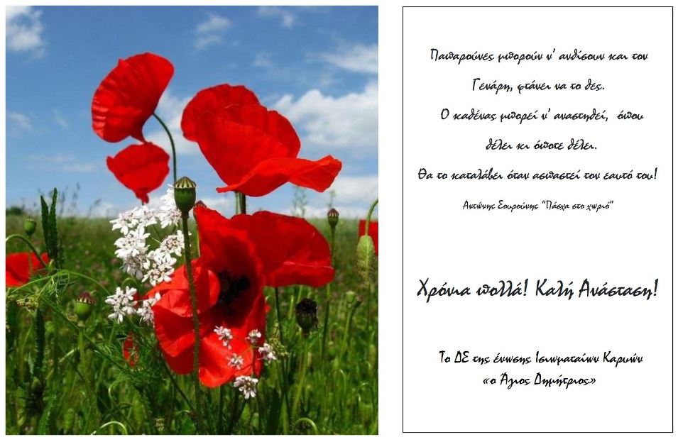 Η Πρόεδρος και το Δ.Σ.του Συλλόγου Πολυτέκνων Μεγαλόπολης εύχονται ΚΑΛΗ ΑΝΑΣΤΑΣΗ σε όλους