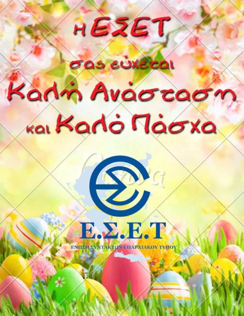 Το Διοικητικό Συμβούλιο της Ένωσης Συντακτών Επαρχιακού Τύπου σας εύχεται Καλή Ανάσταση και Καλό Πάσχα!