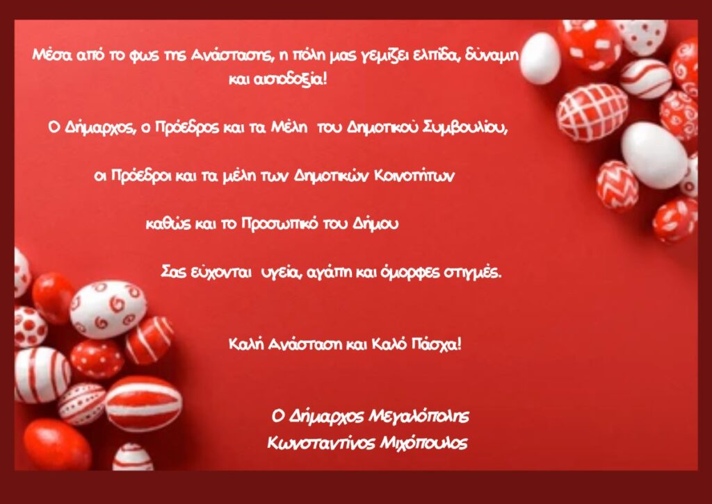 Στείλτε τις ευχές σας για τον Πάσχα στο info@kafeneio-megalopolis.gr