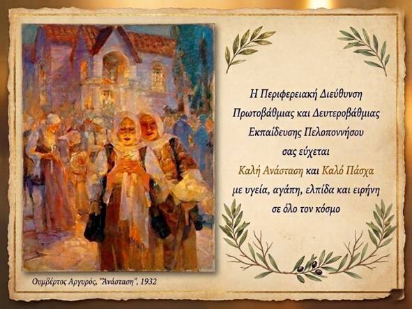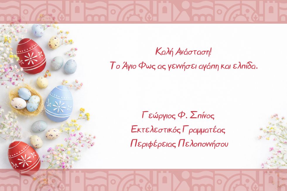 Είθε η φετινή Ανάσταση του Κυρίου, να οδηγήσει τους Έλληνες στην «Ανάσταση» των ιδανικών και των αξιών τους, θέτοντας ένα τέλος στο σκοτάδι της αδικίας και της εκμετάλλευσης !