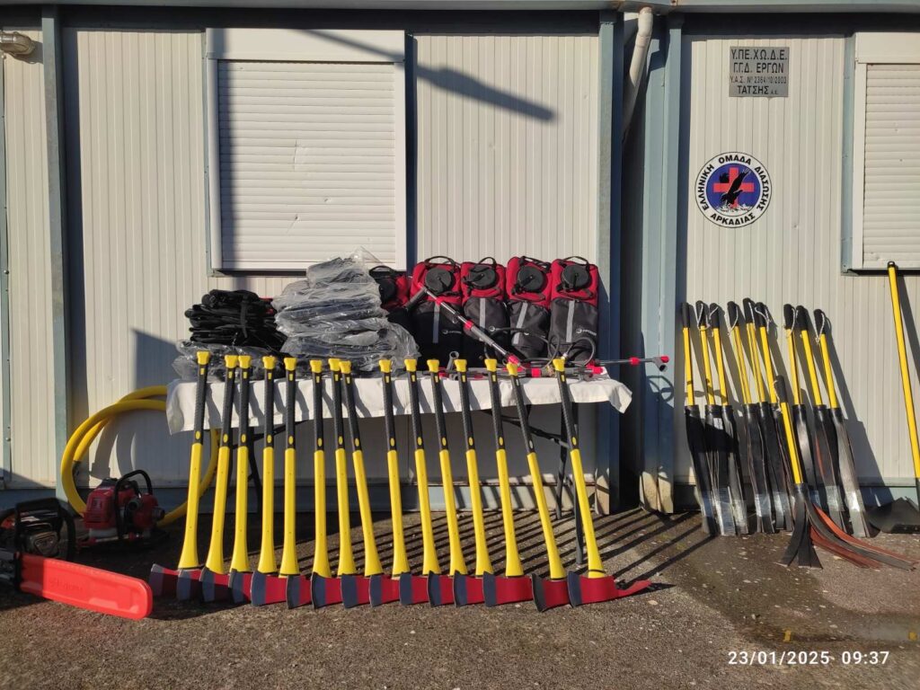 Παραδόθηκε σήμερα από τον Περιφερειάρχη Πελοποννήσου Δημήτρη Πτωχό, παρουσία του Περιφερειακού Συντονιστή Πολιτικής Προστασίας Λάμπρου Τζούμη και του Προϊσταμένου Διεύθυνσης Πολιτικής Προστασίας, Ηλία Πανταζόπουλου, εξοπλισμός στην μοναδική πιστοποιημένη από τη Γενική Γραμματεία Πολιτικής Προστασίας, Ελληνική Ομάδα Διάσωσης Αρκαδίας, που είναι αναγκαίος για τα πεζοπόρα τμήματα της κατάσβεσης δασικών πυρκαγιών.