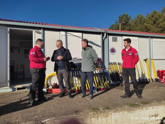 Παραδόθηκε σήμερα από τον Περιφερειάρχη Πελοποννήσου Δημήτρη Πτωχό, παρουσία του Περιφερειακού Συντονιστή Πολιτικής Προστασίας Λάμπρου Τζούμη και του Προϊσταμένου Διεύθυνσης Πολιτικής Προστασίας, Ηλία Πανταζόπουλου, εξοπλισμός στην μοναδική πιστοποιημένη από τη Γενική Γραμματεία Πολιτικής Προστασίας, Ελληνική Ομάδα Διάσωσης Αρκαδίας, που είναι αναγκαίος για τα πεζοπόρα τμήματα της κατάσβεσης δασικών πυρκαγιών.