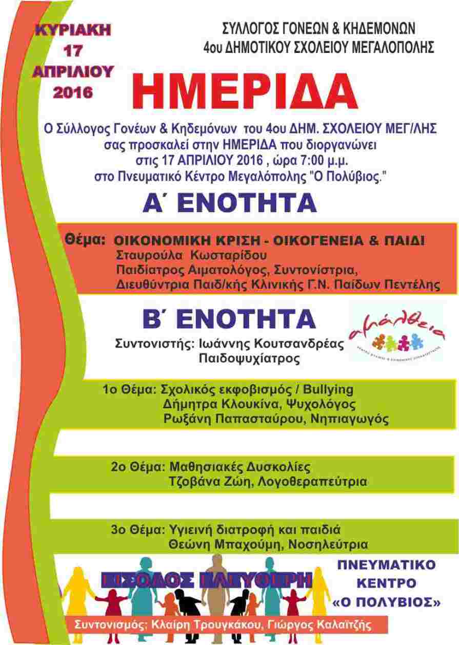 ΑρχικήΑΡΘΡΑΗμερίδα από τον Σύλλογο Γονέων Κηδεμόνων του 4ου Δημοτικού Σχολείου Μεγαλόπολης