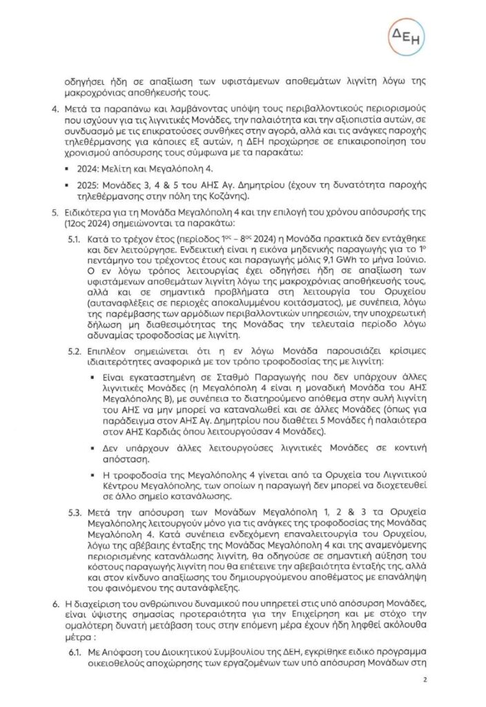 Όπως ενημερωθήκαμε, πρόσφατα η Επιτροπή Φορέων Μεγαλόπολης Αρκαδίας, κατόπιν συσκέψεως των τοπικών φορέων της ευρύτερης εν λόγω περιοχής κατά τη μεταλιγνιτική περίοδο που διανύει, προέβη σε ανακοίνωση, στην οποία εμπεριέχονται μεταξύ των άλλων και τα κάτωθι αιτήματα, ήτοι: α) Να μην κλείσει στο τέλος του χρόνου η 4η Μονάδα και τα Ορυχεία της ΔΕΗ Μεγαλόπολης, β) να γίνουν προσλήψεις προσωπικού σε ΑΔΜΗΕ και ΔΕΔΔΗΕ Μεγαλόπολης, γ) να υπάρχει μόνιμη και σταθερή εργασία για όλους τους εργαζόμενους στη ΔΕΗ, δ) να μονιμοποιηθούν οι συμβασιούχοι και οι εργολαβικοί εργαζόμενοι, ε) να μην υπάρξουν αδειοδοτήσεις σε έργα ΑΠΕ και συνοδά έργα στην περιοχή, στ) να υπάρξει φθηνή θέρμανση και ζεστό νερό στους κατοίκους της Μεγαλόπολης, ζ) να διαγραφούν οι τόκοι, να περικοπούν τα τραπεζικά δάνεια και να «παγώσουν» τα χρέη, η) να αποδοθεί στο 100 % η αποζημίωση στους πυρόπληκτους της φωτιάς στο Χωρέμη και θ) να κατασκευαστούν αντιπλημμυρικά έργα στον Αλφειό ποταμό και στις καμένες εκτάσεις.