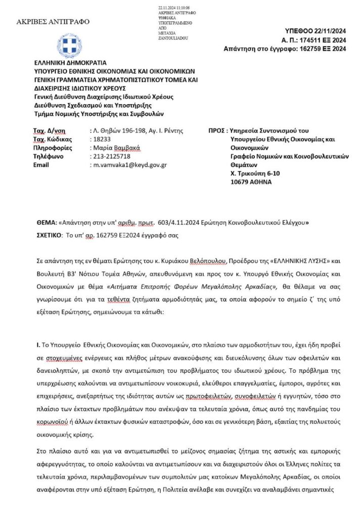 Η ΑΠΑΝΤΗΣΗ ΤΟΥ ΥΠΟΥΡΓΕΙΟΥ ΟΙΚΟΝΟΜΙΚΩΝ