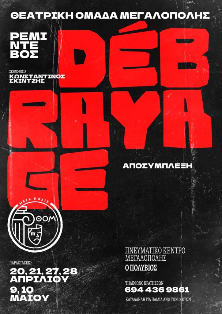 Η Θεατρική Ομάδα Μεγαλόπολης, ετοίμασε και παρουσιάζει το σύγχρονο θεατρικό έργο «Débrayage» (Αποσύμπλεξη) του Γάλλου συγγραφέα Remi de Vos.