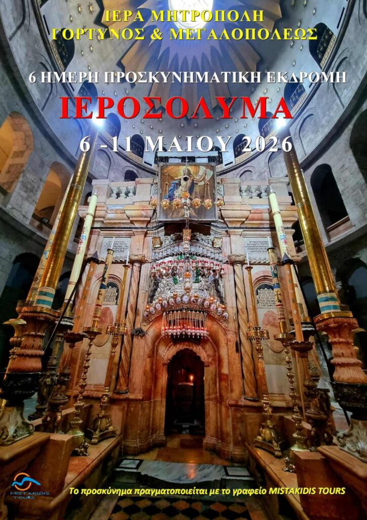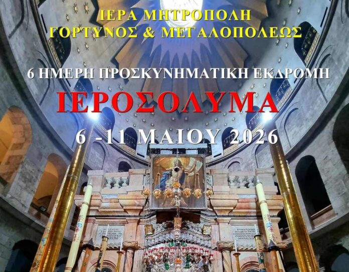 Η Ιερά Μητρόπολη Γόρτυνος και Μεγαλοπόλεως διοργανώνει προσκυνηματική εκδρομή στους Αγίους Τόπους