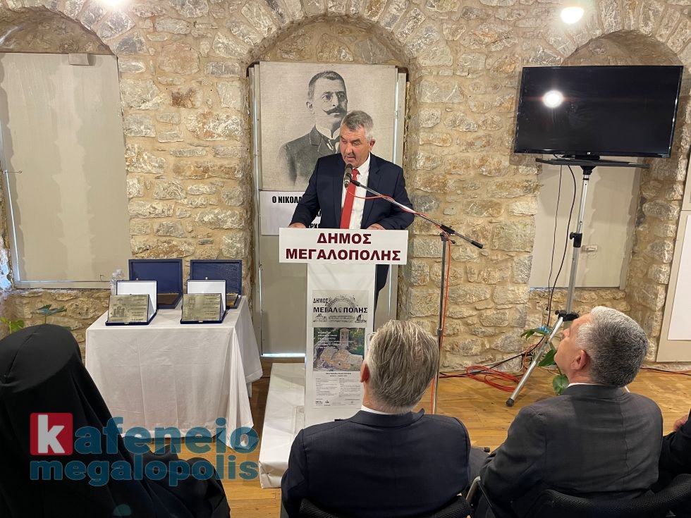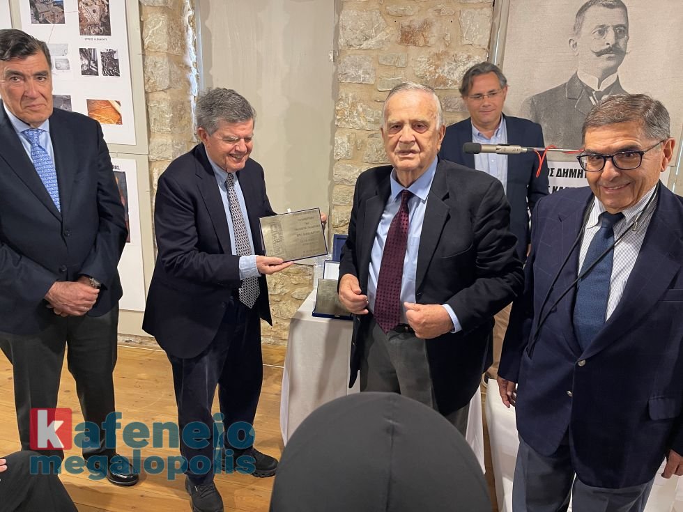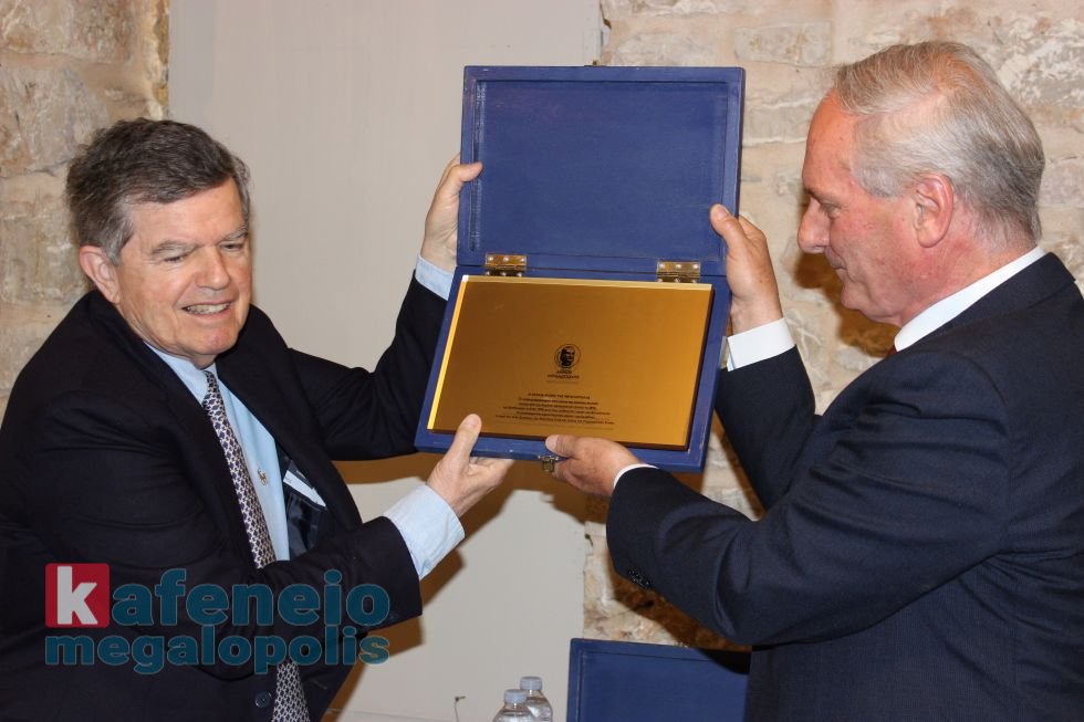 Ο Δήμαρχος Μεγαλόπολης παρέδωσε τιμητικές πλακέτες στον κ. Μαρτίνο και του ζήτησε να βοηθήσει στο μεγάλο έργο της αναστήλωσης του Αρχαίου Θεάτρου Μεγαλόπολης και του αρχαιολογικού μουσείου.